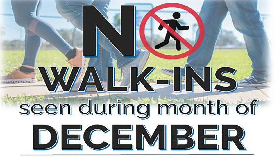 Walk-ins will resume Thursday, January 4, 2024 from 1 p.m. to 4 p.m.