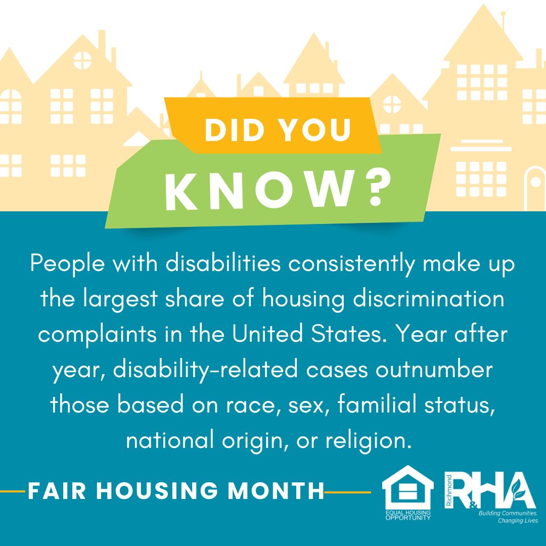 Each week this month, we’re posting new facts about fair housing. Follow us on Facebook and Instagram as we break down how you and people you know are protected by the Fair Housing Act!