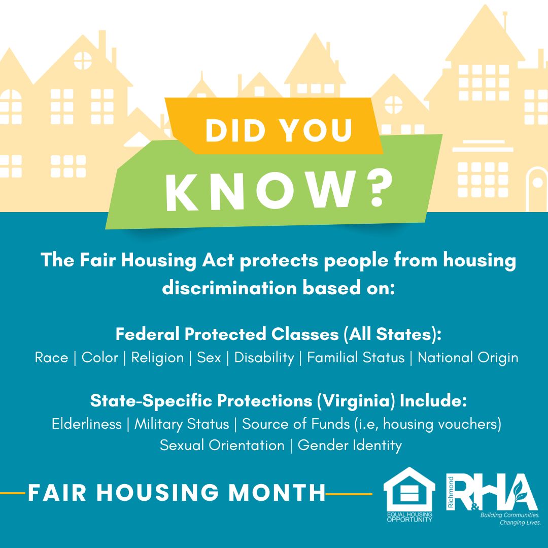RRHA and the U.S. Department of Housing and Urban Development (HUD) commemorate each April as a time to raise awareness about the provisions of the Fair Housing Act.